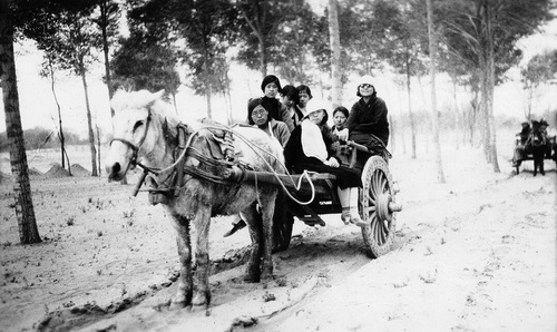 1932年,雷潔瓊(右一)帶學生到河北定縣實驗區(qū)考察。