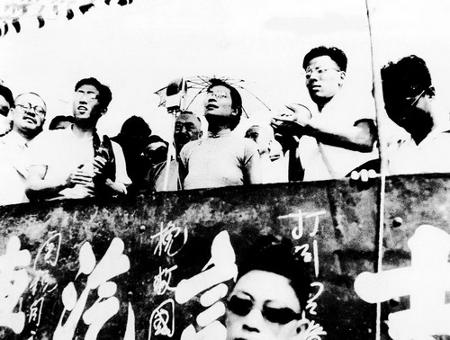 1946年6月23日,雷潔瓊(中間站立者)在上海反內(nèi)戰(zhàn)群眾大會上演說。