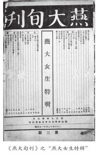 在《燕大旬刊》第一期《發(fā)刊詞》中,編委會(huì)表達(dá)了他們“不落于例行刊物陋習(xí),不受傳統(tǒng)形式拘泥”的辦刊決心,并且決議自1934年9月新學(xué)期開始“出旬刊五期,每期集中于一個(gè)重要專題的討論”。雷潔瓊這篇文章就刊登于第三期《燕大女生特輯》之中,與它一起收錄的文章涵蓋了女校膳宿問題、體育制度、女部管理、女生在校內(nèi)的地位、女男關(guān)系、女生各種生活素描等方方面面。
