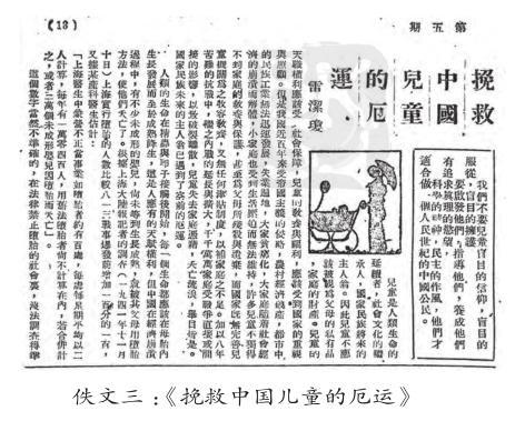 《挽救中國兒童的厄運(yùn)》一文大部分內(nèi)容是雷潔瓊先生1946年發(fā)表在《人民世紀(jì)》第四期《為中國的兒童而呼吁》一文觀點(diǎn)的重申。略有不同的是,1947年刊登在《知識(shí)與生活》上的文章更加強(qiáng)調(diào)了在“八年苦難的抗戰(zhàn)中,繼之內(nèi)戰(zhàn)的延長與擴(kuò)大,千千萬萬家庭受戰(zhàn)爭直接或間接的影響,以致破裂離散,兒童失去家庭憑藉,夭亡流浪,舉目皆是”。為此,雷潔瓊先生大聲疾呼:國家民族未來的主人翁已遇到了空前的厄運(yùn)。因此,這篇文章名為《挽救中國兒童的厄運(yùn)》即為此意。