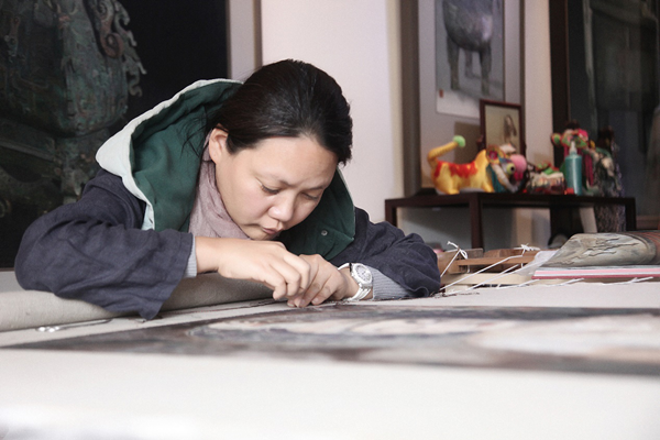大英博物館在經(jīng)過專家組嚴(yán)格的品鑒程序后,正式收藏了鄒英姿的滴滴針法繡《纏繞.冬》。《纏繞》是一個原創(chuàng)系列作品,分為春、夏、秋、冬4幅。留在大英博物館的《纏繞.冬》描繪了冬日的樹林,鄒英姿說:“很多人不喜歡冬天,嫌它單調(diào)、寒冷。但是我在一次冬日爬山時,發(fā)現(xiàn)那些裸露的樹枝就像是體態(tài)優(yōu)美的舞蹈家,用肢體語言譜寫出強(qiáng)烈的生命音符,我得到了另一種感動?!?/p>