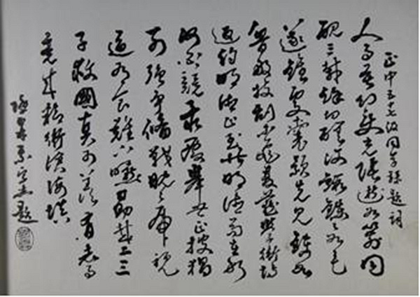 題詞的草書靈動(dòng)灑脫,變化自然,氣韻貫通,有縱逸之態(tài),可當(dāng)?shù)闷稹耙粴夂浅伞敝u(yù)。
