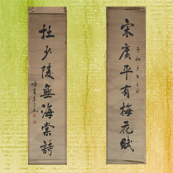 聯(lián)語出自陸游的《六言雜興九首·其六》,“廣平作梅花賦,少陵無海棠詩。正自一時(shí)偶爾,俗人平地生疑。”這是一個(gè)很有趣味,涉及藝術(shù)形象、審美定式等包蘊(yùn)豐富的話題。