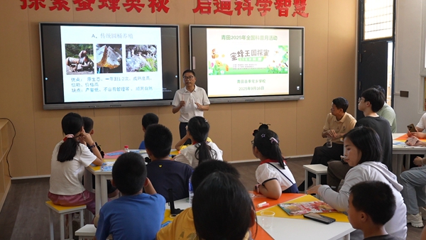 2019年,在他的積極聯(lián)絡(luò)下,民進浙江萬里學院支部與季宅鄉(xiāng)黨委簽訂共建協(xié)議,將高校的人才、科技資源持續(xù)導入鄉(xiāng)村。2021年,“蜂文化科普教育實踐基地”在季宅鄉(xiāng)學校落成,讓孩子們從小理解“每一滴蜜,都是花朵、蜜蜂與人類共同寫就的自然詩篇”,在寓教于樂的自然課堂中宣傳保護生物多樣性、弘揚蜜蜂精神和科學家精神,形成了獨具特色的“蜜蜂精神”特色校園文化和“蜂文化科普教育”實踐品牌。