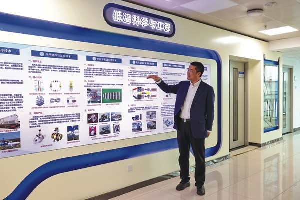 張振濤在受訪時介紹低溫科學與工程學科及其研究成果。楊郁然 攝
