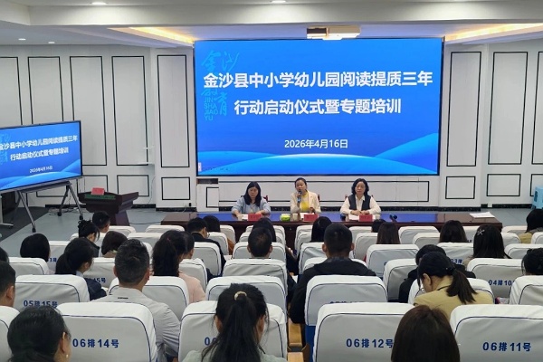 啟動會上,縣教育局相關負責人表示,閱讀是培根鑄魂的基礎工程,是助推理科提質(zhì)、破解教育發(fā)展瓶頸的關鍵支撐,要求全縣教育工作者落實三年行動方案,完善閱讀教學體系,建強閱讀指導隊伍,營造全域閱讀氛圍,以閱讀賦能教育高質(zhì)量發(fā)展。隨后,金沙教育研究院對《金沙縣中小學幼兒園閱讀提質(zhì)三年行動實施方案(2026-2028)》進行深度解讀與策略指導。