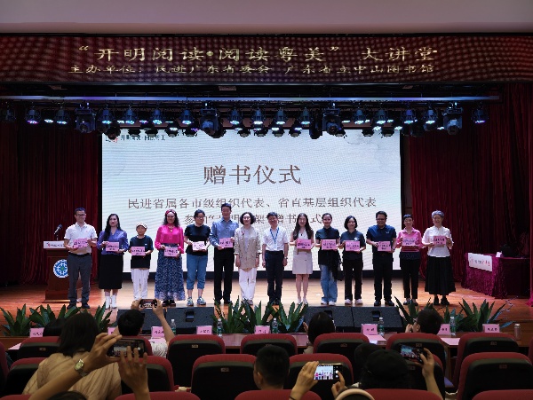 以文會友,以書傳情?;顒蝇F(xiàn)場,一場暖心的圖書文化交流同步開展:廣東高等教育出版社為“開明閱讀·閱讀粵美”項(xiàng)目捐贈3000余冊優(yōu)質(zhì)圖書,充實(shí)閱讀資源;民進(jìn)廣東省委會向廣東省立中山圖書館贈送會史長卷《山河同脈》精縮典藏版,省圖書館則回贈《廣東通志》文墨套盒文創(chuàng)精品,雙方以文化為紐帶,進(jìn)一步深化合作情誼。