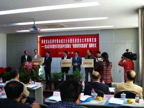 2010年11月5日,支部與寶山區(qū)重點中學民進支部聯(lián)合舉行了對口聯(lián)誼簽約- “創(chuàng)新教育實驗基地”揭牌儀式。共建目的旨在通過支部之間的條塊結合、交流,優(yōu)勢互補,促進中青年干部的培養(yǎng),促進寶山基礎教育與優(yōu)質高等教育的對接和溝通,為不斷提升基礎教育質量創(chuàng)造良好條件,為提升本市教育水平建言獻策。