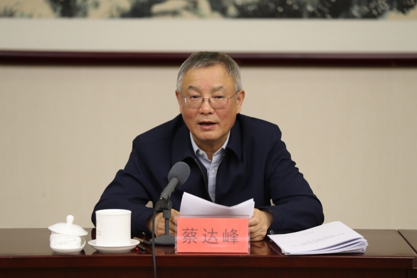 民進(jìn)中央主席、主題年工作領(lǐng)導(dǎo)小組組長蔡達(dá)峰主持會(huì)議并講話。
