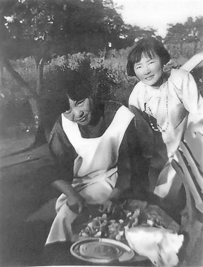 此前,在美國留學時,林徽因和冰心拍攝過一張照片。照片應該拍攝于暑假期間的野餐聚會,草地上放著椅子,椅子上擺著砧板,邊緣一個瓷盤,冰心圍著白圍裙,拿著菜刀正在專心切菜,可能由于拍照的人告訴她拍照,這才抬起頭,林徽因穿著白上衣貓著腰半蹲在身后,好像要與冰心合影這才跑進了鏡頭——筆者一直認為這張照片就是喜歡攝影的梁思成拍的。從這張照片上可以看出,冰心與梁思成、林徽因三人的關系應該說是友好的。