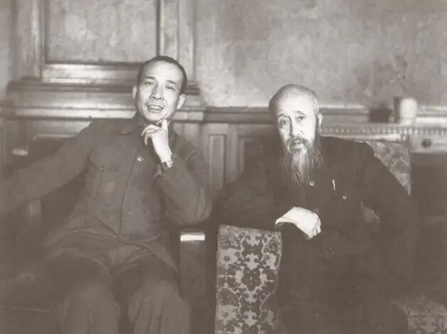 1949年1月,李富春和沈鈞儒在沈陽鐵路賓館。