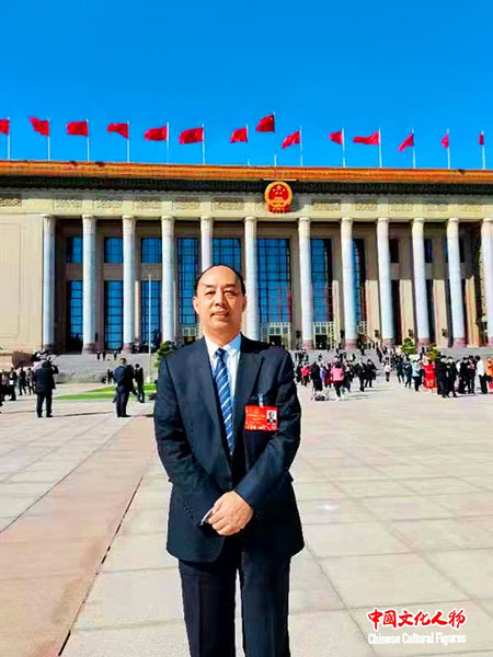 2022年3月,周洪宇代表出席十三屆全國人大五次會議,在人民大會堂前留影。