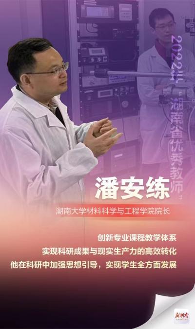 潘安練教授是民進(jìn)湖南省委會(huì)委員,湖南大學(xué)材料科學(xué)與工程學(xué)院院長(zhǎng)、微納結(jié)構(gòu)物理與應(yīng)用技術(shù)湖南省重點(diǎn)實(shí)驗(yàn)室主任。先后在Science等國(guó)際頂級(jí)期刊上發(fā)表論文300余篇,入選教育部新世紀(jì)優(yōu)秀人才、國(guó)家杰出青年科學(xué)基金、科技部中青年科技創(chuàng)新領(lǐng)軍人才和中組部萬(wàn)人計(jì)劃領(lǐng)軍人才等國(guó)家和省部級(jí)人才計(jì)劃,并以第一完成人獲得國(guó)家自然科學(xué)二等獎(jiǎng),湖南省自然科學(xué)一等獎(jiǎng)等多項(xiàng)科技獎(jiǎng)勵(lì)。潘安練教授注重創(chuàng)新專(zhuān)業(yè)課程教學(xué)體系,加強(qiáng)思想引導(dǎo),幫助學(xué)生樹(shù)立遠(yuǎn)大理想和踏實(shí)科研作風(fēng),全面提升學(xué)生綜合素養(yǎng)。培養(yǎng)的研究生中,20余人次獲國(guó)家、校獎(jiǎng)學(xué)金,10余人入職高校任副高級(jí)以上職稱(chēng)教職或進(jìn)入世界500強(qiáng)企業(yè)工作;培養(yǎng)的博士后兩人獲博新計(jì)劃支持,1人獲洪堡學(xué)者支持,1人人選“香江學(xué)者”計(jì)劃,4人獲得海外博士后職位;培養(yǎng)的青年老師多人入選國(guó)家級(jí)人才計(jì)劃。