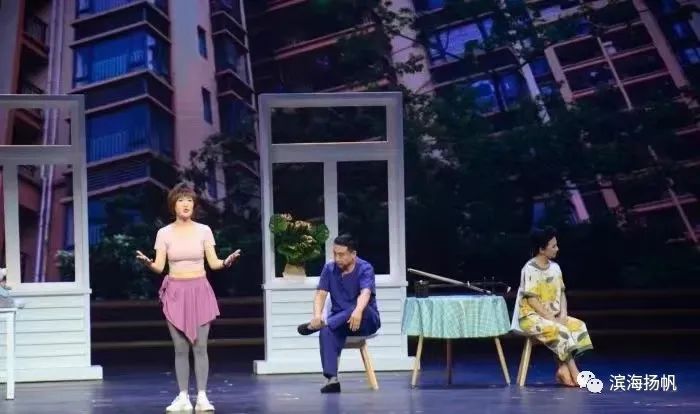 此外,該劇舞臺(tái)設(shè)計(jì)新穎獨(dú)特,把兩個(gè)家庭的內(nèi)景同時(shí)展現(xiàn),實(shí)現(xiàn)了兩個(gè)家庭各自的表演與舞臺(tái)整體表演相融合,拓展了表演空間,豐富了表演形式。在表演情緒的渲染方面,雖然新冠疫情肆虐給人們帶來許多負(fù)面影響,但通過表演,大家看到更多的是抗疫精神的宣傳和人們樂觀向上的生活態(tài)度。