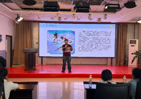 活動(dòng)伊始,民進(jìn)會(huì)員、沈陽(yáng)市最美志愿者姜游游介紹了雷鋒及金城龍兩位同志的先進(jìn)事跡。隨后,活動(dòng)進(jìn)入核心環(huán)節(jié),姜游游以《詩(shī)仙李白有三絕》為題,創(chuàng)新性地提出“古人亦‘學(xué)雷鋒’”,生動(dòng)講述了李白仗劍刺虎勇救小虎子、憑借文才幫助老王頭奪回酒樓的典故,用古人的行善之舉,讓同學(xué)們理解“學(xué)雷鋒”不僅是當(dāng)代的追求,更是中華民族一脈相承的優(yōu)良傳統(tǒng),讓雷鋒精神有了更深厚的文化底蘊(yùn)。在講述中,姜老師還為同學(xué)們深情朗誦了李白名篇《將進(jìn)酒》,以聲傳情帶領(lǐng)同學(xué)們感受古典詩(shī)詞的磅礴氣勢(shì),之后還帶領(lǐng)全體同學(xué)共同朗誦了李白另一經(jīng)典作品《望天門山》,讓同學(xué)們?cè)谠?shī)詞浸潤(rùn)中厚植文化自信,體驗(yàn)書(shū)香潤(rùn)澤。
