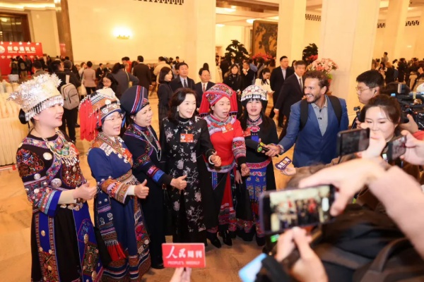 “哇,真的好時尚!”“既見東方匠心,又具現(xiàn)代格調(diào)!”聽到大家的稱贊,姚建萍笑著說:“這些蝴蝶,是非遺蘇繡傳承的象征。它們從千年之前飛來,飛到我的身上,這次,我把這份‘可穿可戴的非遺’帶到兩會上!”