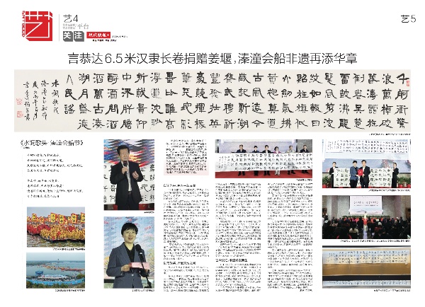 言恭達(dá)6.5米漢隸長卷捐贈(zèng)姜堰,溱潼會(huì)船非遺再添華章