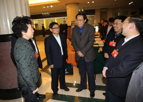 12月14日上午,嚴(yán)雋琪主席來(lái)到簽到處,與前來(lái)報(bào)到的代表親切交談。