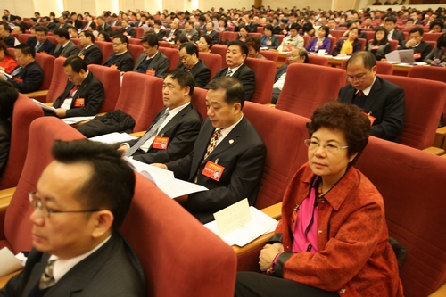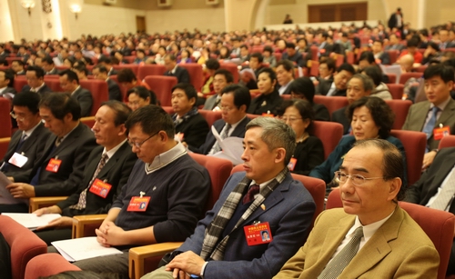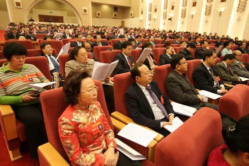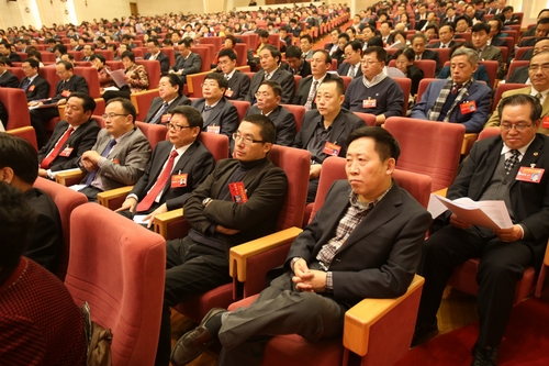 代表們認真聽取大會報告