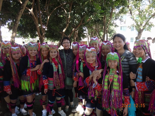 唐銀琳(中)多次采訪報道瑤族女生班。圖為2012年12月與瑤族女生合影。