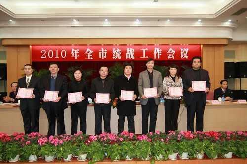 2010年,民進大連市委王雋義(右二)論文榮獲大連市統(tǒng)戰(zhàn)理論研究優(yōu)秀成果一等獎。