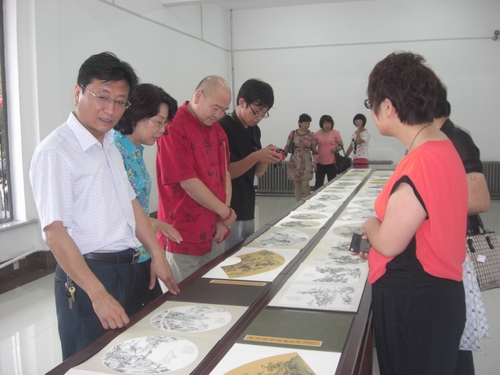 2012年7月,宋文廣參觀會員書畫展(左一)。