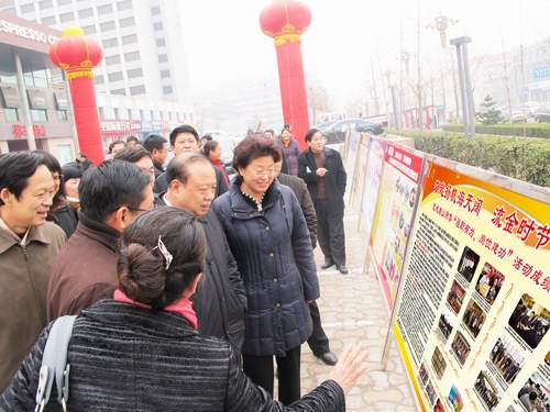 2012年12月,時(shí)任唐山市委書記王雪峰、市長(zhǎng)陳國(guó)鷹,市政協(xié)主席郭彥洪,市政協(xié)副主席、民進(jìn)主委楊方等領(lǐng)導(dǎo)觀看民進(jìn)唐山市委會(huì)“履職有為 崗位建功”展牌。