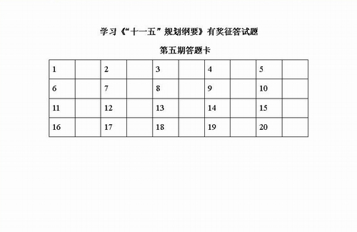 學(xué)習(xí)《“十一五”規(guī)劃綱要》有獎(jiǎng)?wù)鞔鹪囶}第五期答題卡