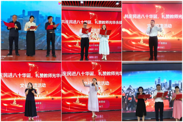 在文藝交流環(huán)節(jié),6名會(huì)員代表率先登臺(tái),先后朗誦《民進(jìn)之歌》《師恩如光照亮心途》《民進(jìn)頌,師者魂》等作品。會(huì)員們以真摯的情感、鏗鏘的語調(diào),將民進(jìn)人的初心使命與師者的崇高追求娓娓道來,深情演繹引發(fā)全場共鳴。隨后,大家依次獻(xiàn)唱《我的中國心》《母親是中華》《每當(dāng)我輕輕走過老師窗前》等歌曲,將活動(dòng)氛圍推向頂點(diǎn)。