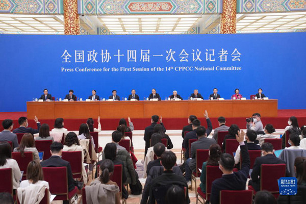 3月5日,全國(guó)政協(xié)十四屆一次會(huì)議在人民大會(huì)堂召開(kāi)首場(chǎng)記者會(huì)。各民主黨派中央和全國(guó)工商聯(lián)主席首次集體亮相,與中外記者見(jiàn)面。