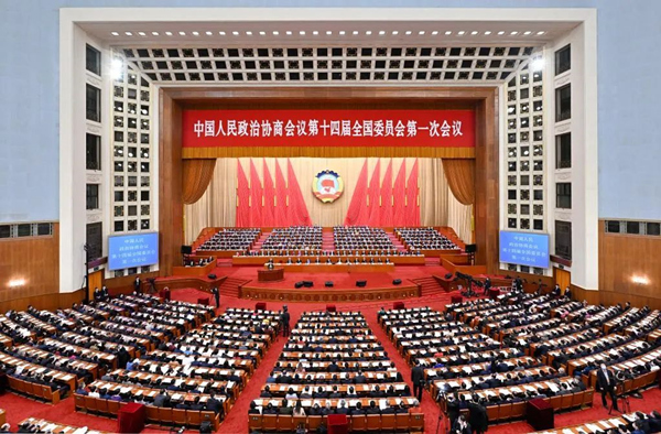 3月7日,全國(guó)政協(xié)十四屆一次會(huì)議在北京人民大會(huì)堂舉行第二次全體會(huì)議。新華社記者 殷博古 攝