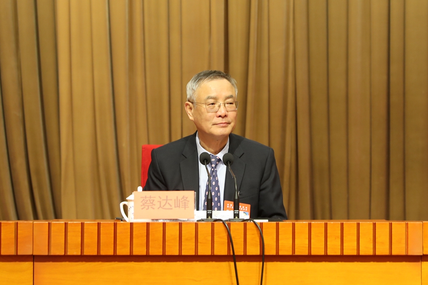 民進(jìn)中央主席蔡達(dá)峰代表民進(jìn)第十五屆中央常務(wù)委員會(huì)作工作報(bào)告。